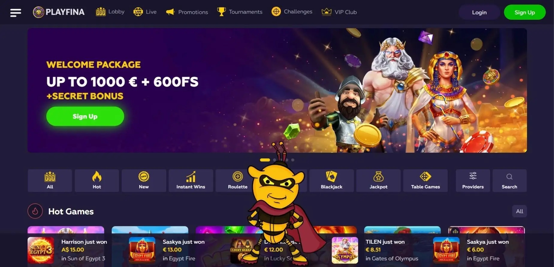 Official Playfina Casino website: Start by visiting the casino's official website, as they often publish promotions and bonus codes on their site.